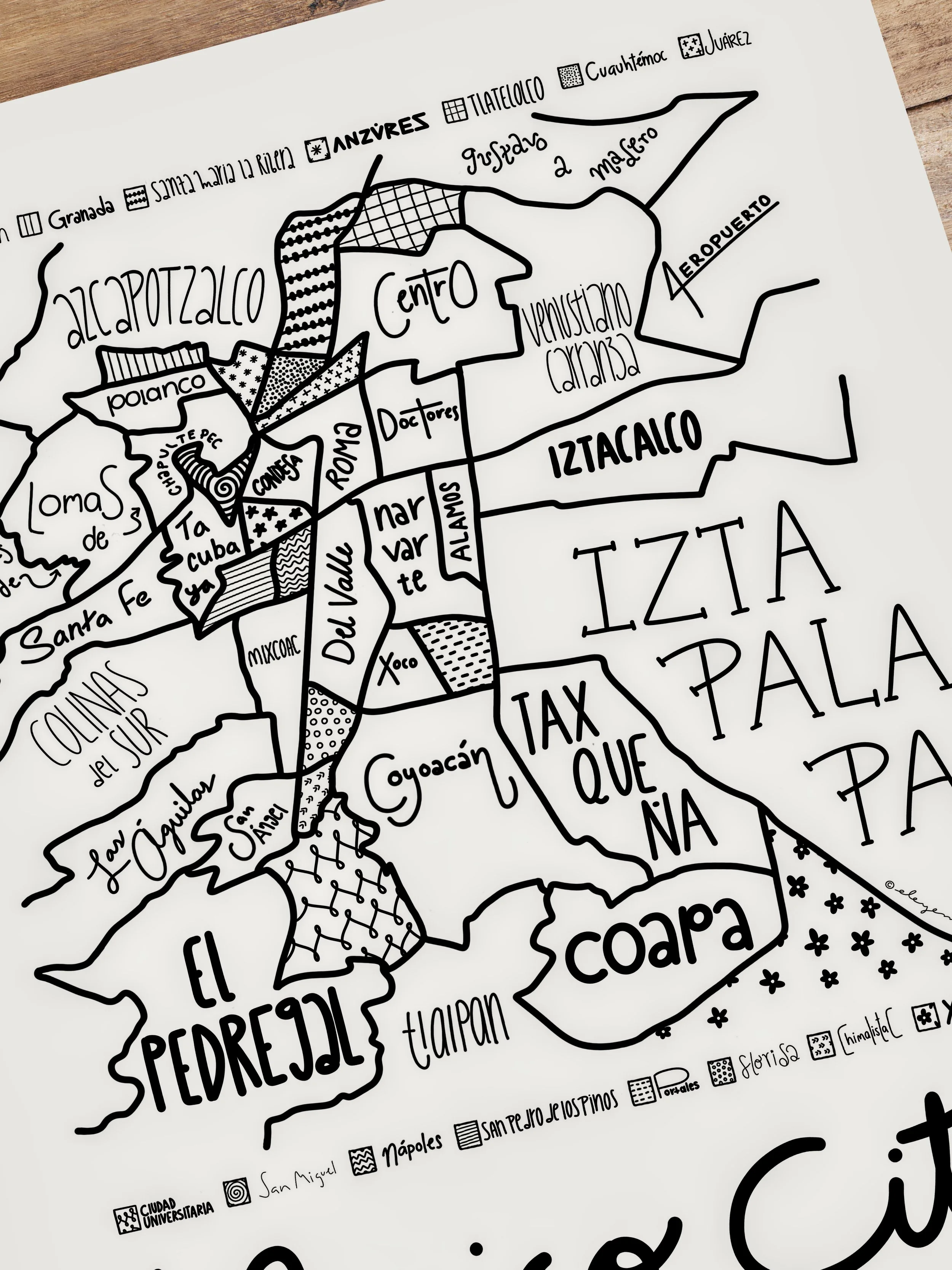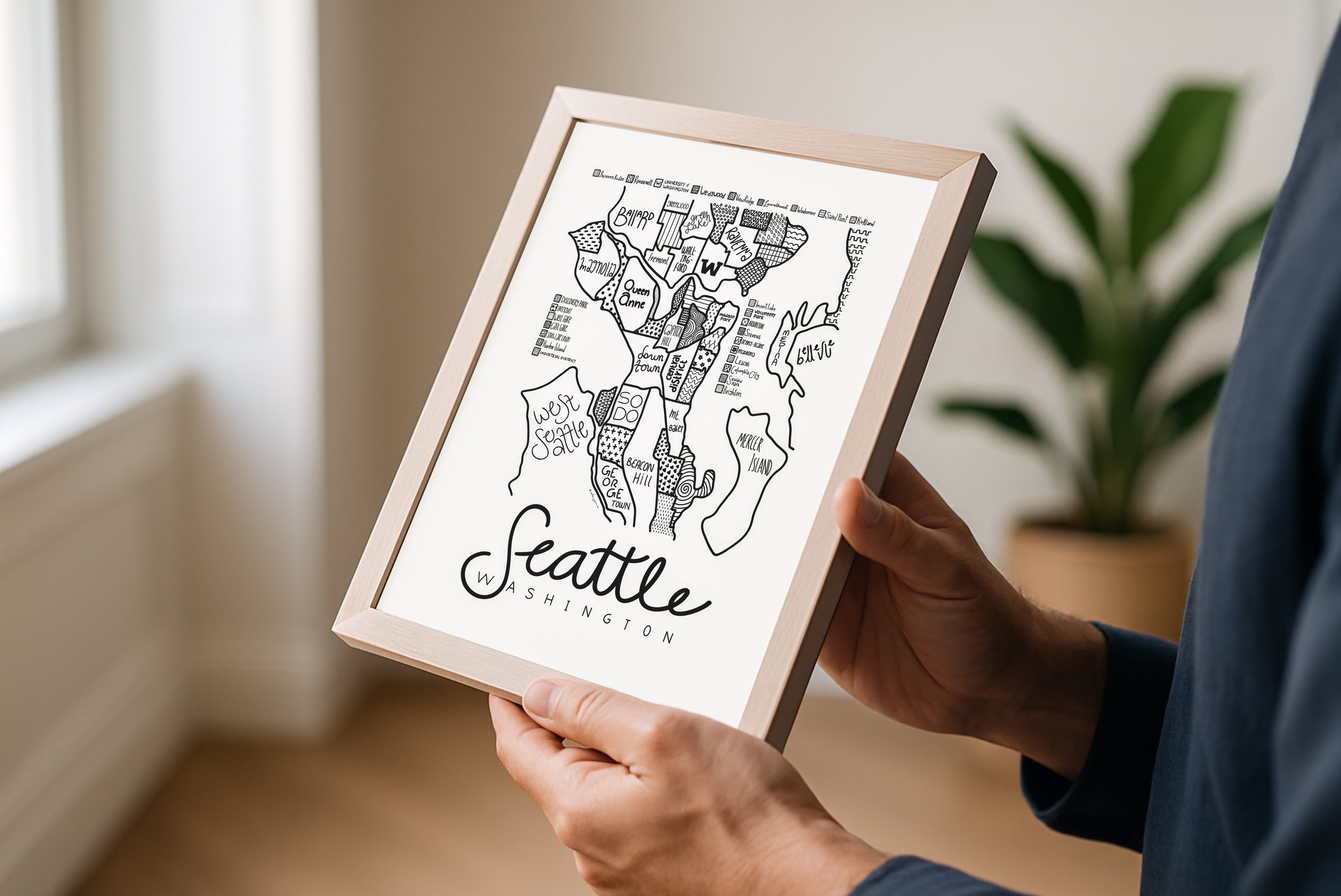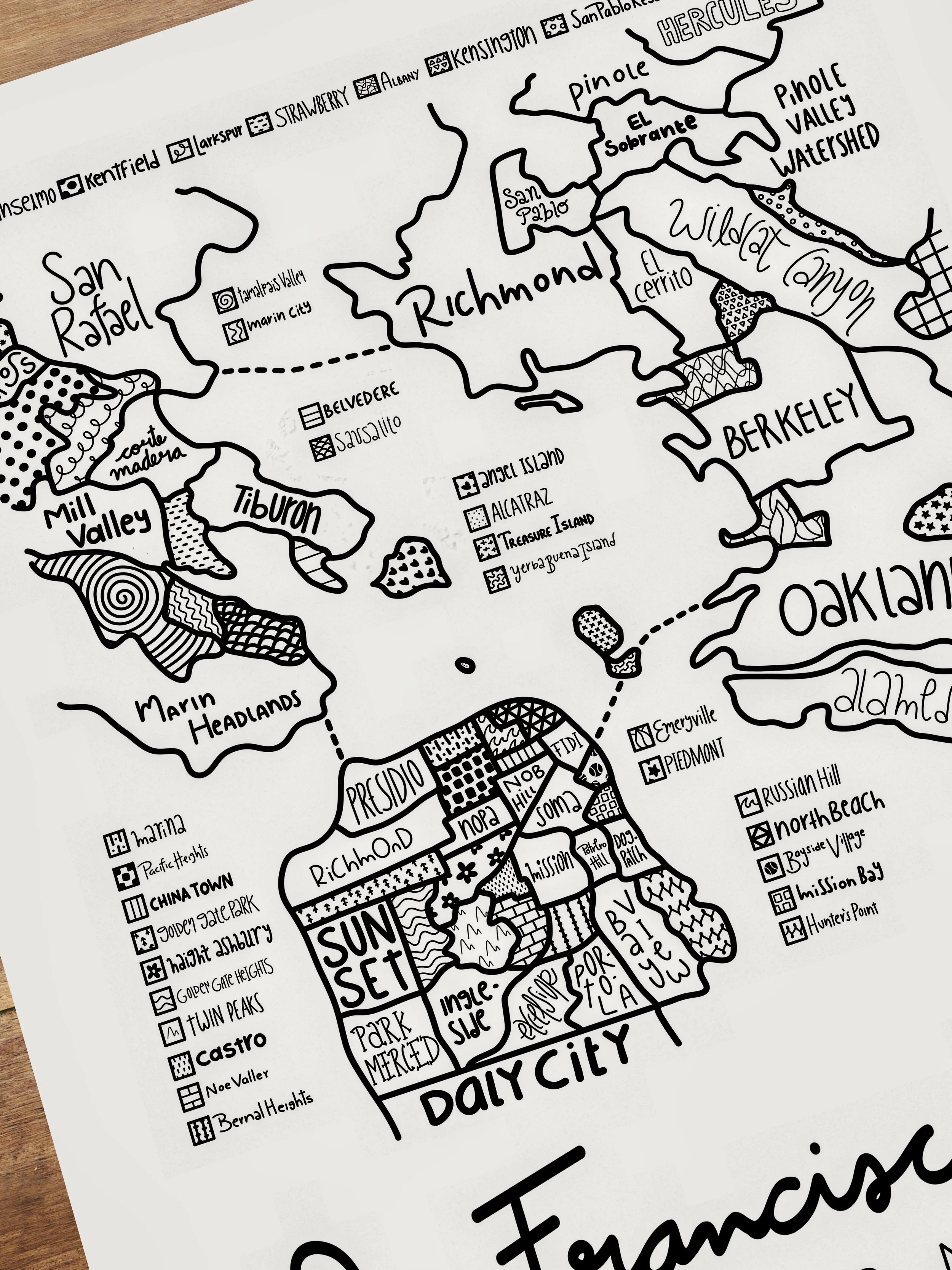 Black and white print of Liam and Michelle’s original neighborhood map design of London, England.